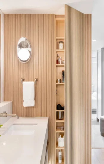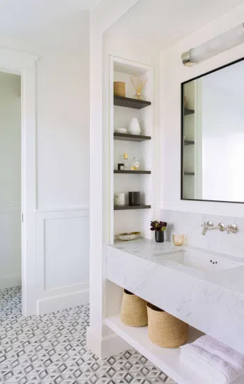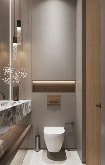 Скрытое хранение в ванной комнате — еще один способ оптимизировать пространство и сделать ванную комнату визуально привлекательной. Шкафы и полки можно интегрировать в стены или ниши, чтобы максимально использовать доступное пространство.