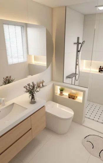 Минимализм. Минималистичный подход в дизайне ванных комнат продолжает оставаться в тренде. Плавные линии, нейтральные цвета и простые формы отлично подходят для создания спокойной и расслабляющей атмосферы.
