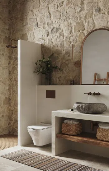 Биофильный дизайн. Тренд на биофильный дизайн интерьера, о котором мы говорили уже несколько раз, также находит своё отражение и в оформлении ванных комнат. Использование натуральных материалов и природных текстур создает атмосферу гармонии и превращает пространство ванной комнаты в настоящий оазис спокойствия.