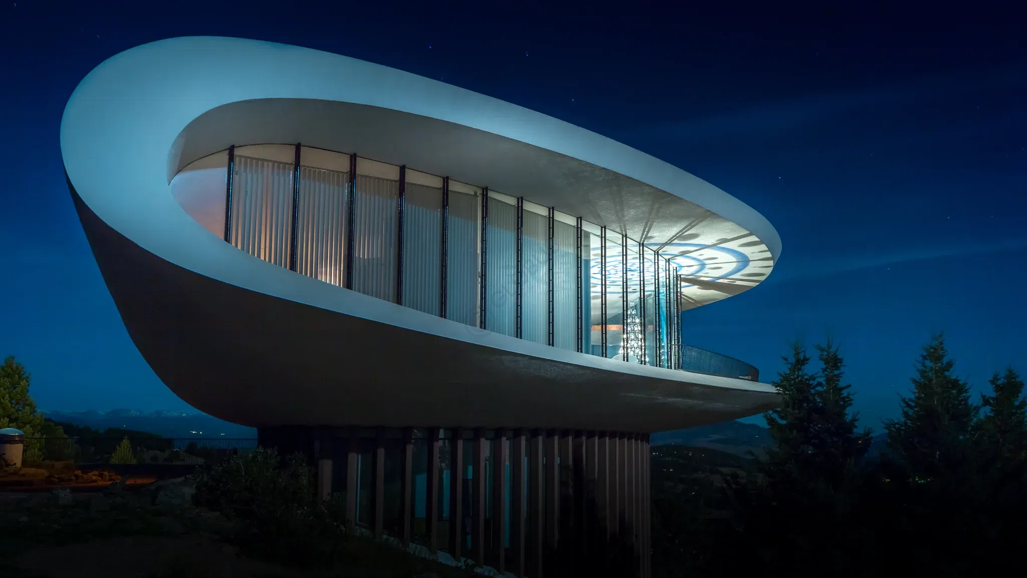 Когда архитектор Чарльз Дитон задумывал "Скульптурный дом", возвышающийся на горе Дженеси рядом с Денвером, его целью было освободиться от угловатой обыденности традиционных построек. Подчеркивая важность органичных, нелинейных жилых пространств, он смело заявил: "Люди не угловаты, почему же они должны жить в прямоугольниках?”. Так появилась эта причудливая вилла площадью 7500 квадратных футов, разделенная на три уровня, которая отступает от всех стандартов своими изогнутыми формами и впечатляющим панорамным застеклением. Внутреннее убранство не менее примечательно: винтовая лестница, создающая ощущение морской раковины, минималистичная мебель будто бы из космического корабля и полукруглые комнаты с потрясающим видом на бескрайние леса Колорадо. Миниатюрный снаружи дом на самом деле вмещает в себе пять спален, пять ванных комнат, гараж на четыре автомобиля и даже кинозал.