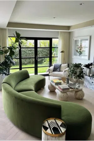 Мебель и архитектурные элементы с плавными изогнутыми силуэтами были популярны в течение последних нескольких лет и продолжат набирать популярность в 2025 году. Это связано с тем, что такие предметы способны создать уютную, расслабляющую и дружелюбную атмосферу. Например, мягкая мебель с плавными изогнутыми линиями способствует созданию комфортного уголка для отдыха. А такие архитектурные элементы, как арки и своды привносят в пространство изящество и элегантность, делают его визуально больше.