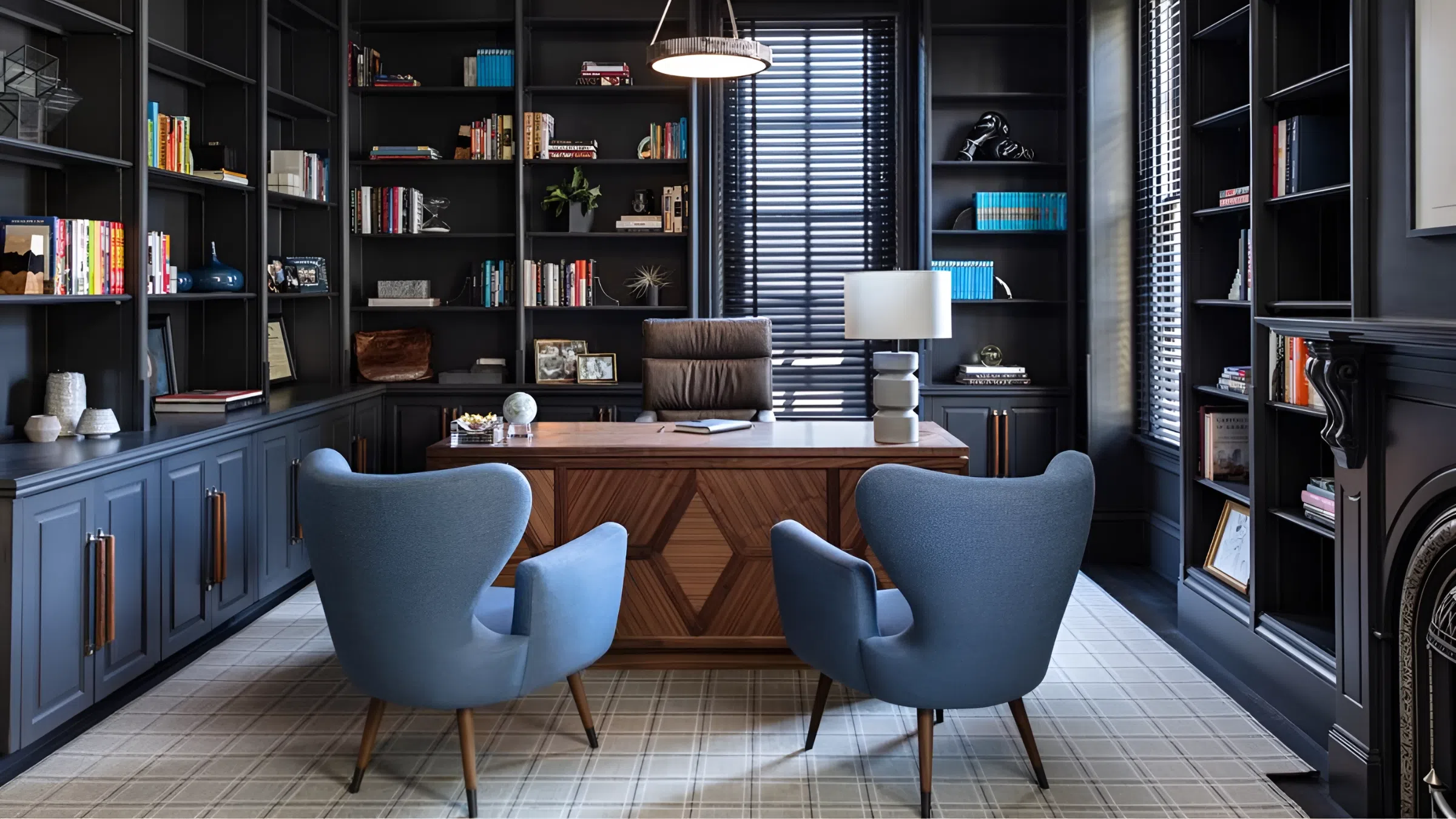 В дополнение к функциональной мебели в домашний офис можно поставить мягкое кресло или кушетку. Это поможет избежать чрезмерной строгости и холодности интерьера, а также станет удобным местом для чтения, отдыха или коротких перерывов в работе.