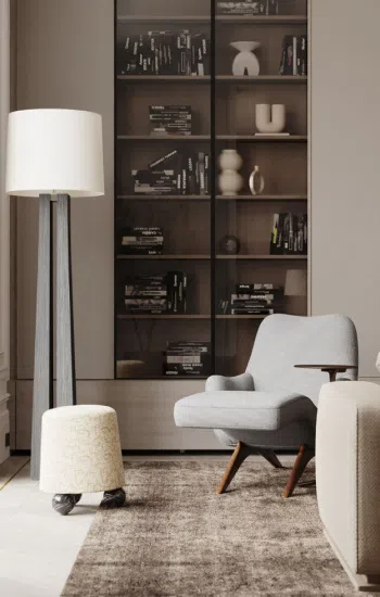 Ключевым элементом для создания комфортного и эстетичного уголка для отдыха является удобная и стильная мебель. В качестве главного предмета можно выбрать мягкое кресло, поддерживающее спину, пуф или 1-2-местный диван. А небольшой журнальный столик для книг или чашки чая позволит разместить все необходимое под рукой. Стоит обращать внимание на форму и размер изделий, чтобы они гармонично вписывались в общий дизайн интерьера.