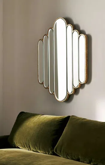 Аксессуары сложных форм и самых разных стилей могут найти свое применение в интерьере ар-деко. Однако ключевым декоративным элементом являются зеркала. Из них можно создать целую композицию или повесить отдельно друг от друга пару уникальных зеркал.