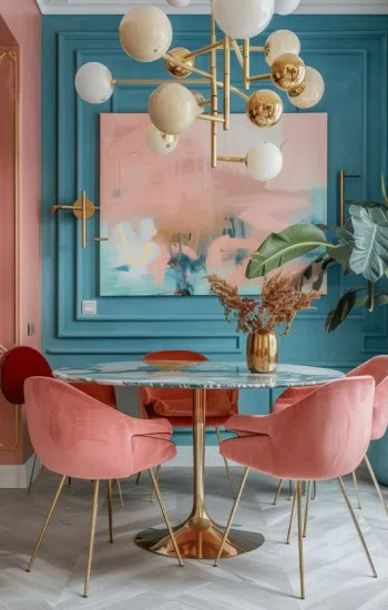 Современный ар-деко — это необычные подходы, которые трудно представить в рамках других стилей. В таком интерьере доминируют крупные, выразительные элементы, которые сразу привлекают внимание. Поэтому не стоит воздерживаться от экспериментов с декором. Создавайте композиции из картин с цветочными мотивами или животными, но следите за схожестью тематики изображений.