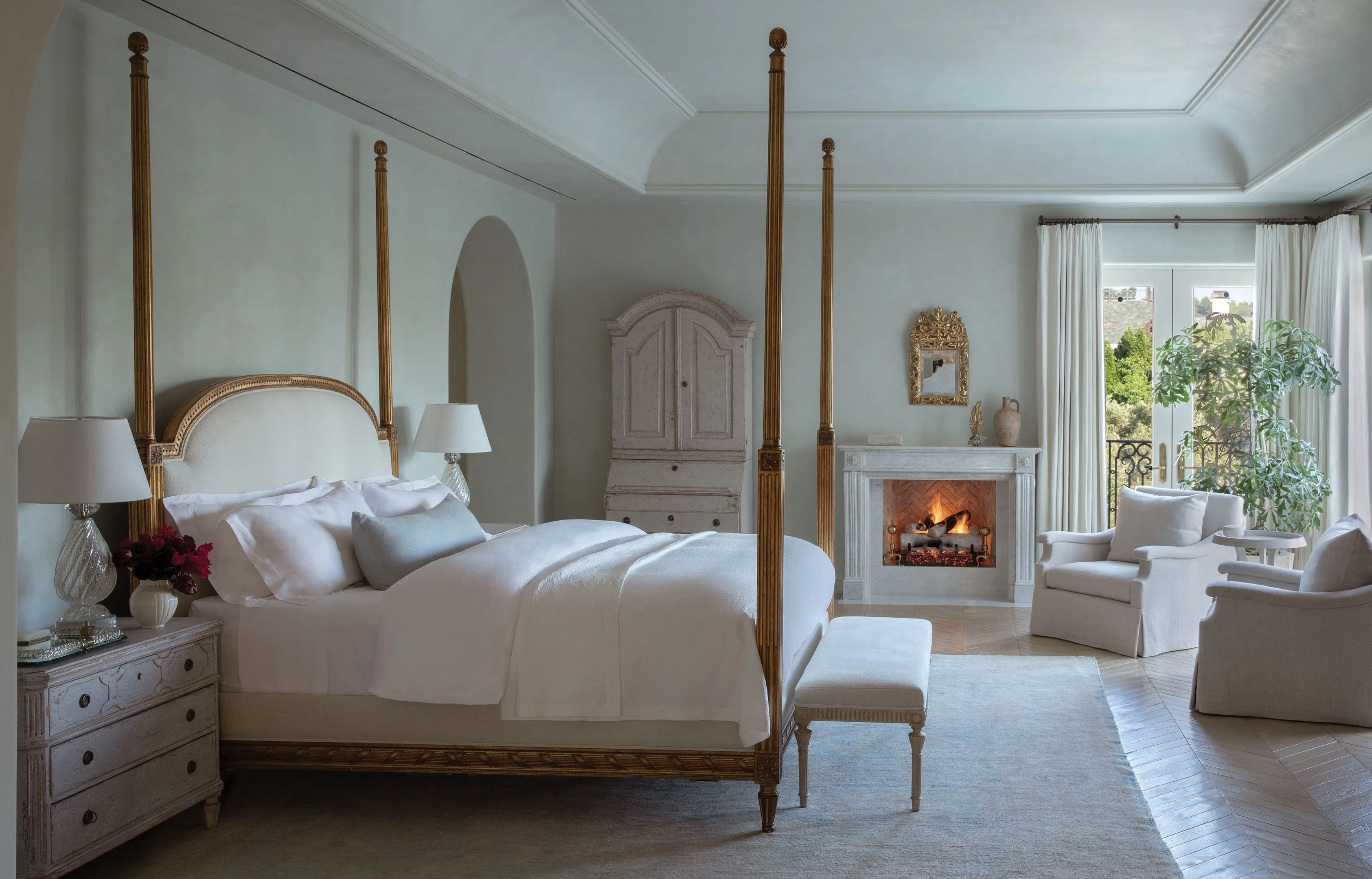 Спальня Софии Вергары — это настоящий оазис покоя, так как она оформлена в нежных, умиротворяющих тонах. Мягкая, почти воздушная, кровать с высоким изголовьем — центральный элемент комнаты. Тонкие льняные шторы добавляют спальне нотку интимности, а большие окна, как и в других комнатах дома, пропускают естественный свет, создавая уютную атмосферу. В углу комнаты расположены маленькие милые кресла и столик для чтения или утреннего кофе — поистине итальянский образ жизни!