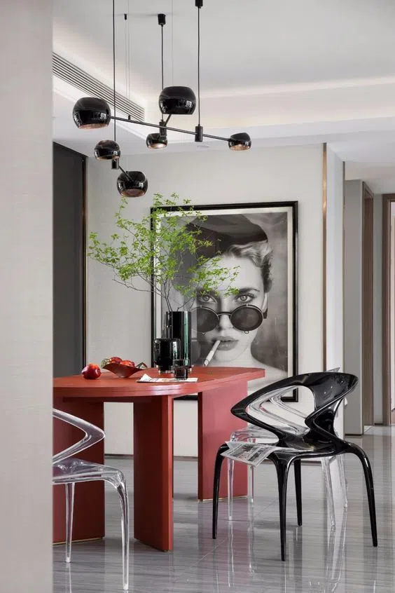 Красный — достаточно яркий и насыщенный цвет, из-за чего стоит быть аккуратнее с его использованием в интерьере. Например, можно добавить небольшие красные акценты в виде предметов искусства и декора или покрасить одну из стен пространства в красный цвет.