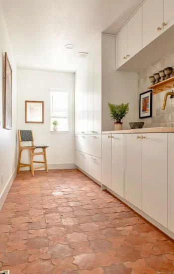 Благодаря своему стильному естественному виду, терракотовое напольное покрытие способно придать кухне уютную и теплую атмосферу. Такое покрытие гармонично впишется в пространство в стиле кантри, прованс или в средиземноморский интерьер.