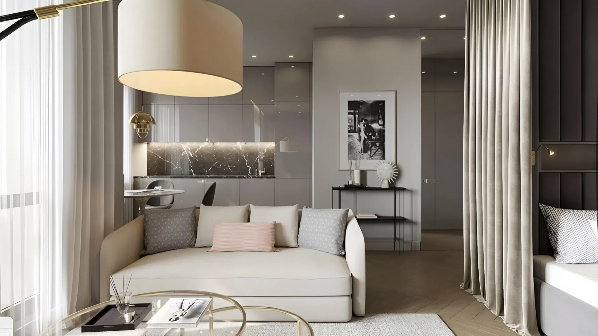 Массивная мебель съедает пространство. Выбирайте компактные, функциональные предметы: раскладные столы, пуфы вместо громоздких кресел, кровати с ящиками для хранения. Откажитесь от лишнего, сделайте ставку на многофункциональность!