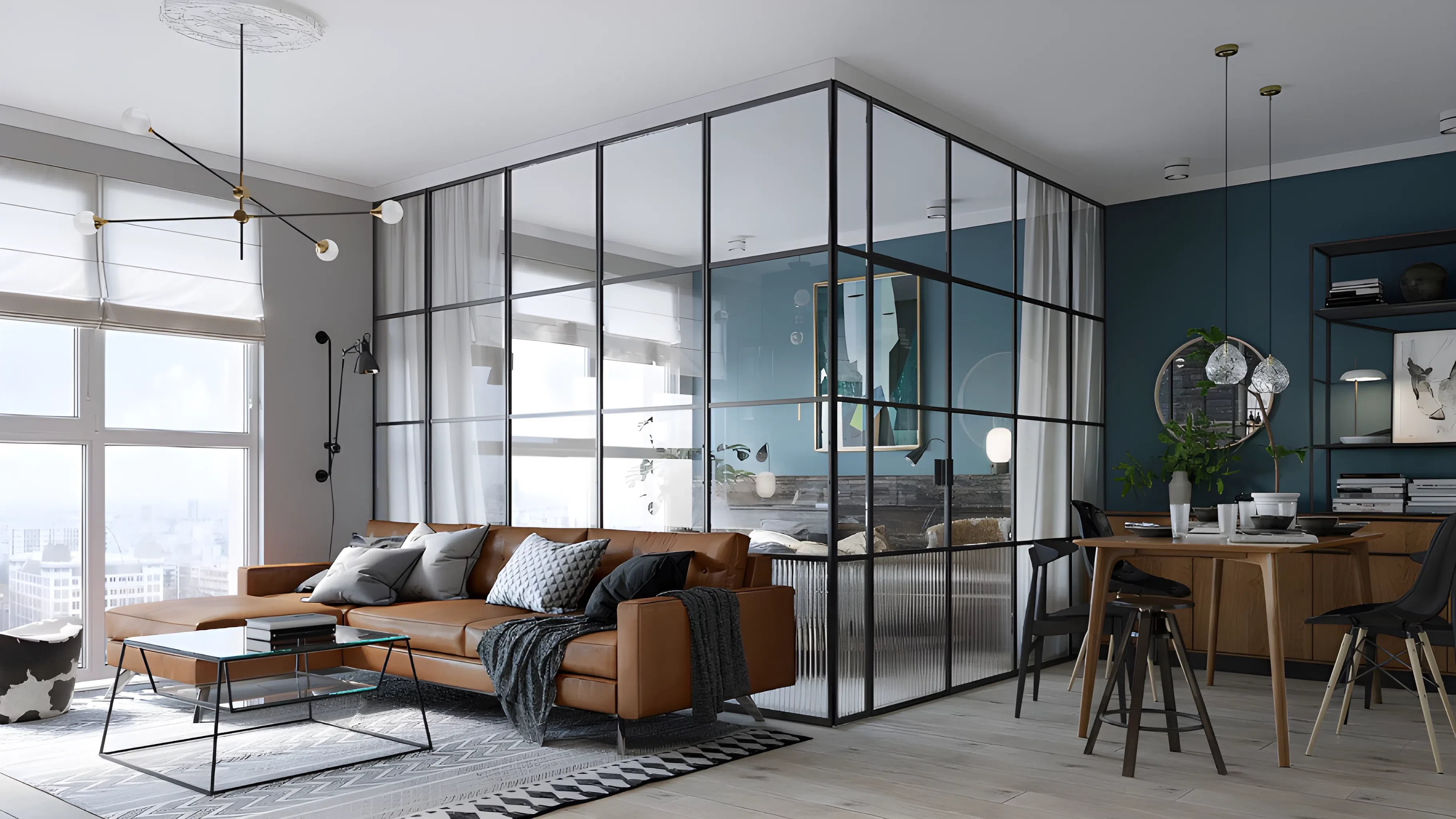 Забудьте о тяжелых шторах, пусть естественный свет льется потоком. Если возможно, выделите большую часть стены под окна, которые сразу создадут ощущение простора . А если планировка не позволяет, добавьте искусственные источники света: подвесные светильники, точечные лампы, бра - они визуально разгружают пространство и создают уютные уголки.