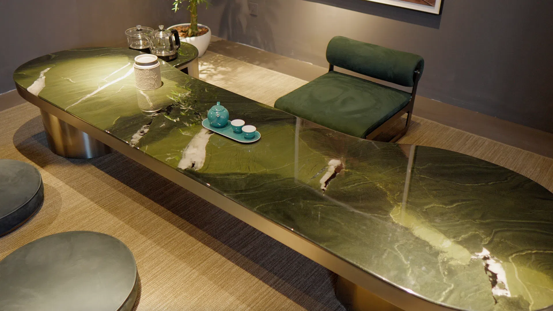 Также на неделе мебельного дизайна мы ознакомились с павильоном производителя сантехники и мебели для ванных комнат, шоурумом с роскошными столами для традиционной китайской чайной церемонии и необычным шоурумом производителя ковров.