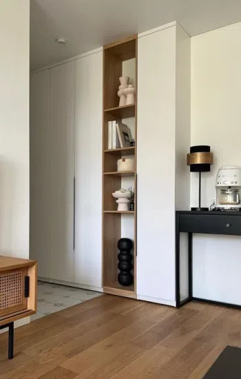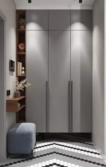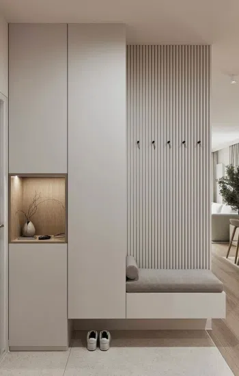 Отдавайте предпочтение высоким и узким шкафам, чтобы максимально использовать вертикальное пространство. Или расположите в прихожей полки и крючки для хранения ключей, перчаток и шарфов. Это позволит разместить больше вещей, не занимая много места на полу.