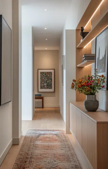 Ограниченная площадь не должна стать поводом для отказа от дизайнерских задумок. Если пространство не позволяет разместить дополнительную мебель или декор, акцентные обои — это мощный инструмент для преображения небольшой прихожей.