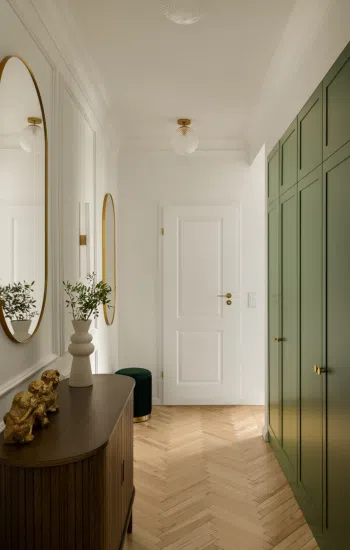 Определите стену, которая станет центральным элементом пространства. Обычно это стена, которая первой бросается в глаза при входе в помещение. Если прихожая узкая, акцентную стену лучше расположить в торце, чтобы визуально расширить пространство.
