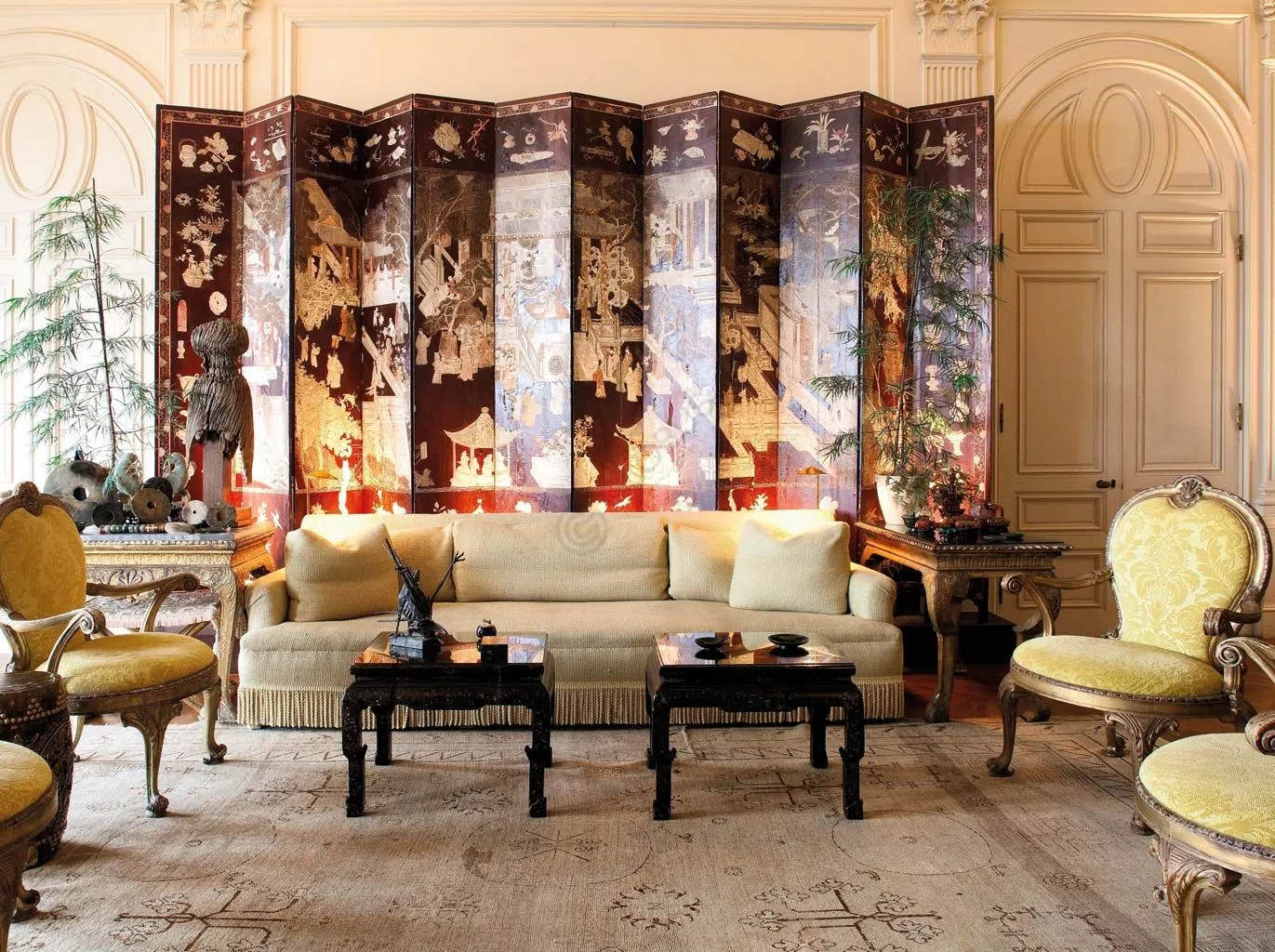 Наверное, самый характерный элемент этого стиля. Ширмы создают ощущение таинственности и камерности. В классическом варианте - это всегда четное количество створок, и конечно нельзя забывать про богатые украшения, шелк, резной орнамент и живописные сюжеты. В современных реалиях это можно использовать не только для эстетических, но и практических целей: например, для зонирования пространства и создания более спокойных уединенных уголков.