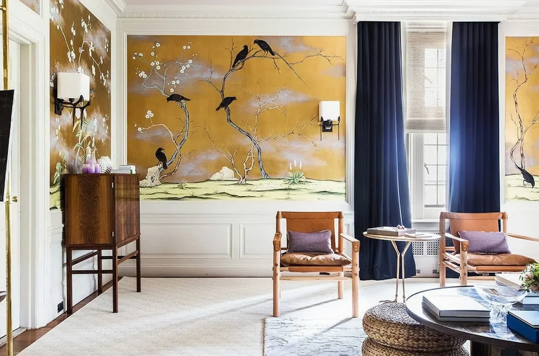 Современной альтернативой китайским шелкам могут стать фактурные обои с ярким восточным принтом или этническими мотивами. Такая адаптация шинуазри добавит интерьеру яркости, а также за счет своей мягкости и тактильности создаст атмосферу тепла и уюта.