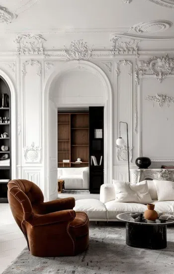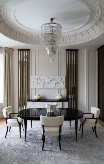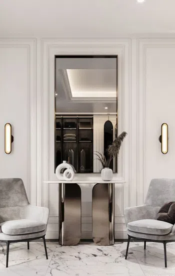 Симметрия и правильные пропорции, придающие интерьеру ощущение гармонии и баланса, являются центральными аспектами неоклассического стиля. Эти принципы находят свое отражение как в размещении мебели, так и в архитектурных и декоративных элементах. К примеру, в неоклассической гостиной два идентичных кресла можно расположить на одной линии по обеим сторонам дивана, а картины, зеркала или скульптуры разместить так, чтобы они создавали зеркальное отражение друг друга.
