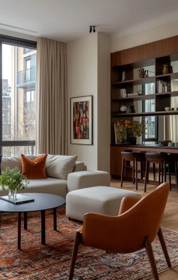 Замена мебели с четкими линиями и острыми углами на предметы с более плавными органическими формами также привнесет в пространство мягкость и комфорт.