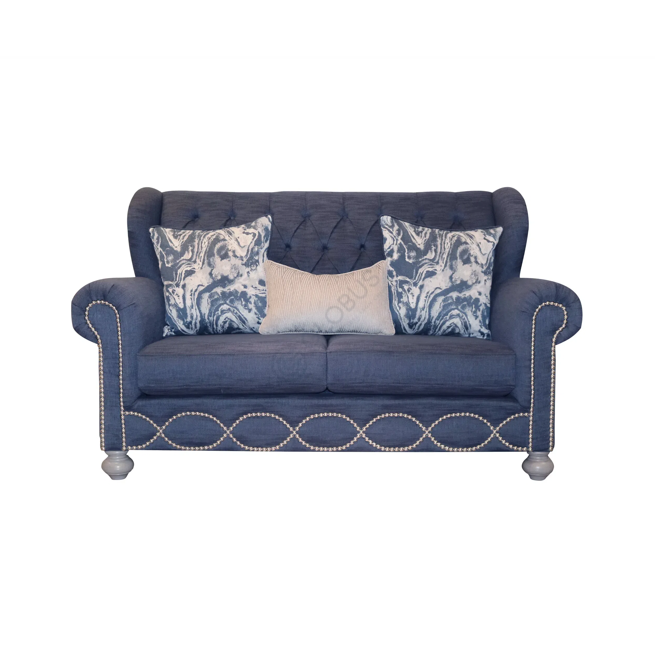 Роскошная обивка может быть выполнена из высококачественной кожи, практичной экокожи или приятного на ощупь текстиля, подчеркивая фактуру и глубину цвета. Мастерство проявлено в каждой детали, от строгой утяжки пуговицами до декоративной отделки по периметру, состоящей из ряда мерцающих гвоздиков и изящного волнообразного узора в нижней части. Прочный каркас из натурального дерева и МДФ обеспечивает надежность, а устойчивые ножки, возможно, дополненные металлическими элементами, завершают образ.