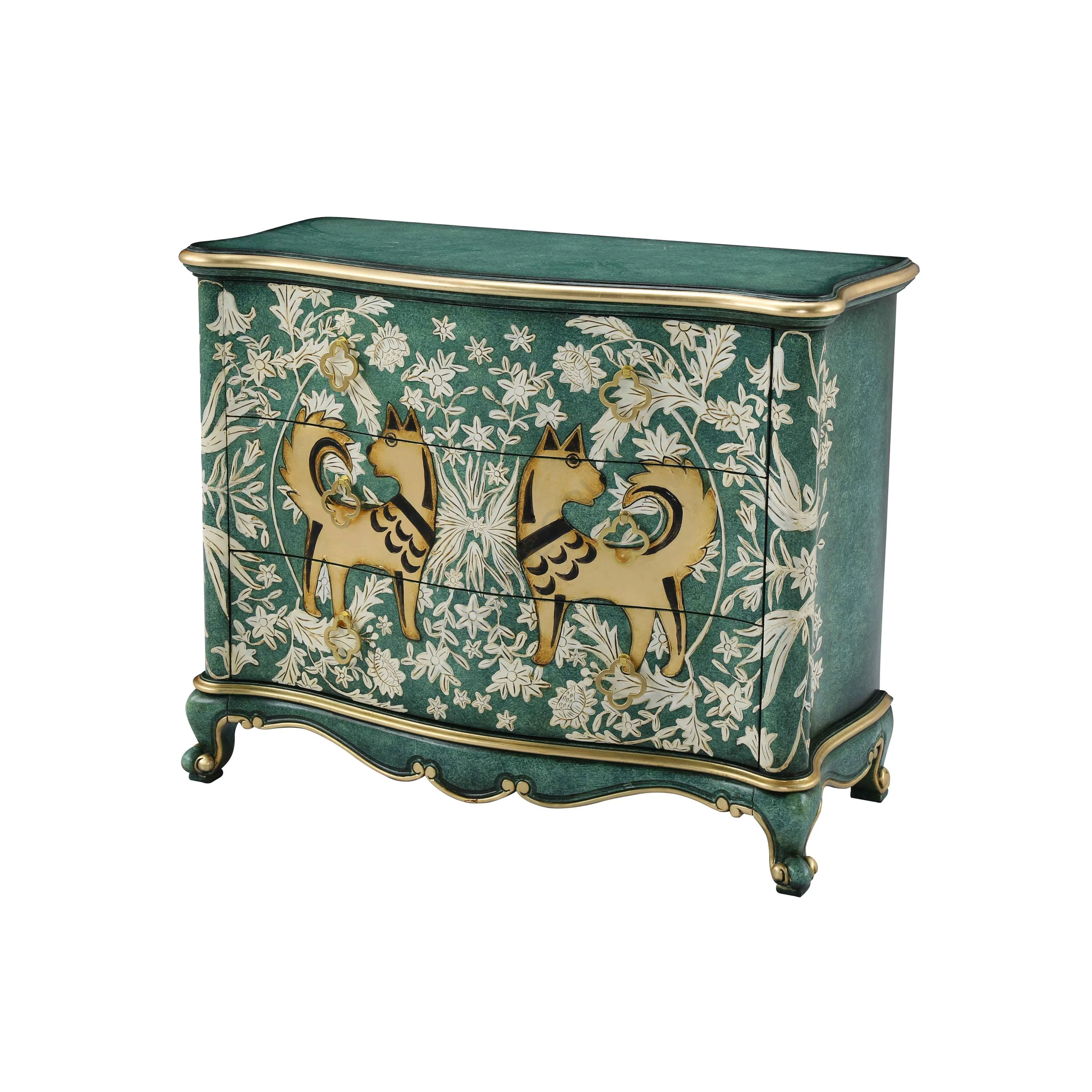 Классическая форма комода с изящными изогнутыми ножками и плавными линиями корпуса гармонично сочетается с неординарным оформлением, создавая выразительный контраст. Изделие выполнено с использованием натурального дерева и качественного МДФ, что гарантирует его прочность и долговечность. Каждая деталь проработана с вниманием к качеству.