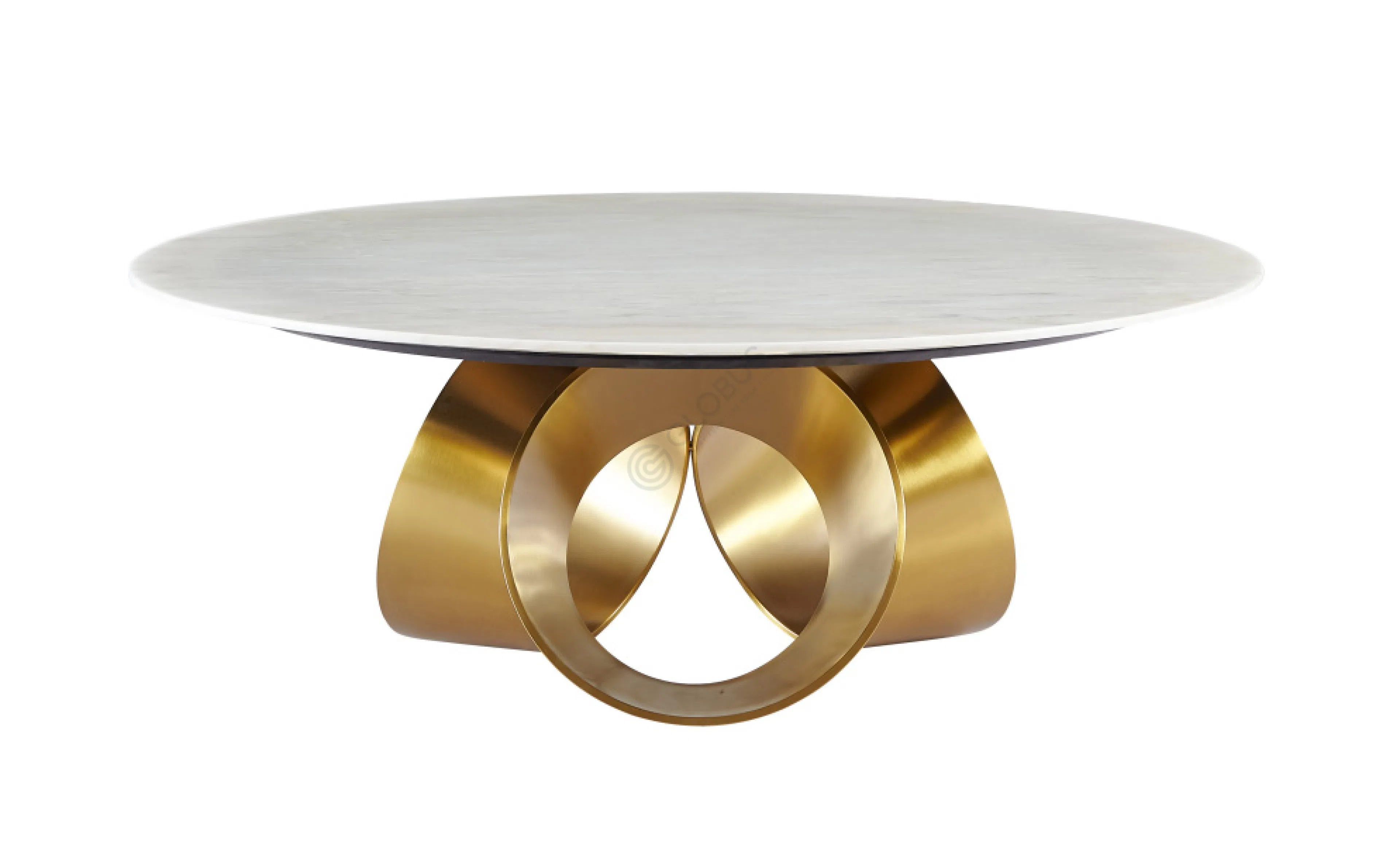 Основание из нержавеющей стали, выполненное в скульптурном стиле ар-деко, придает столу динамичный и запоминающийся силуэт. Элегантная форма поддерживает общий баланс композиции, делая этот предмет акцентом интерьера столовой или кухни.