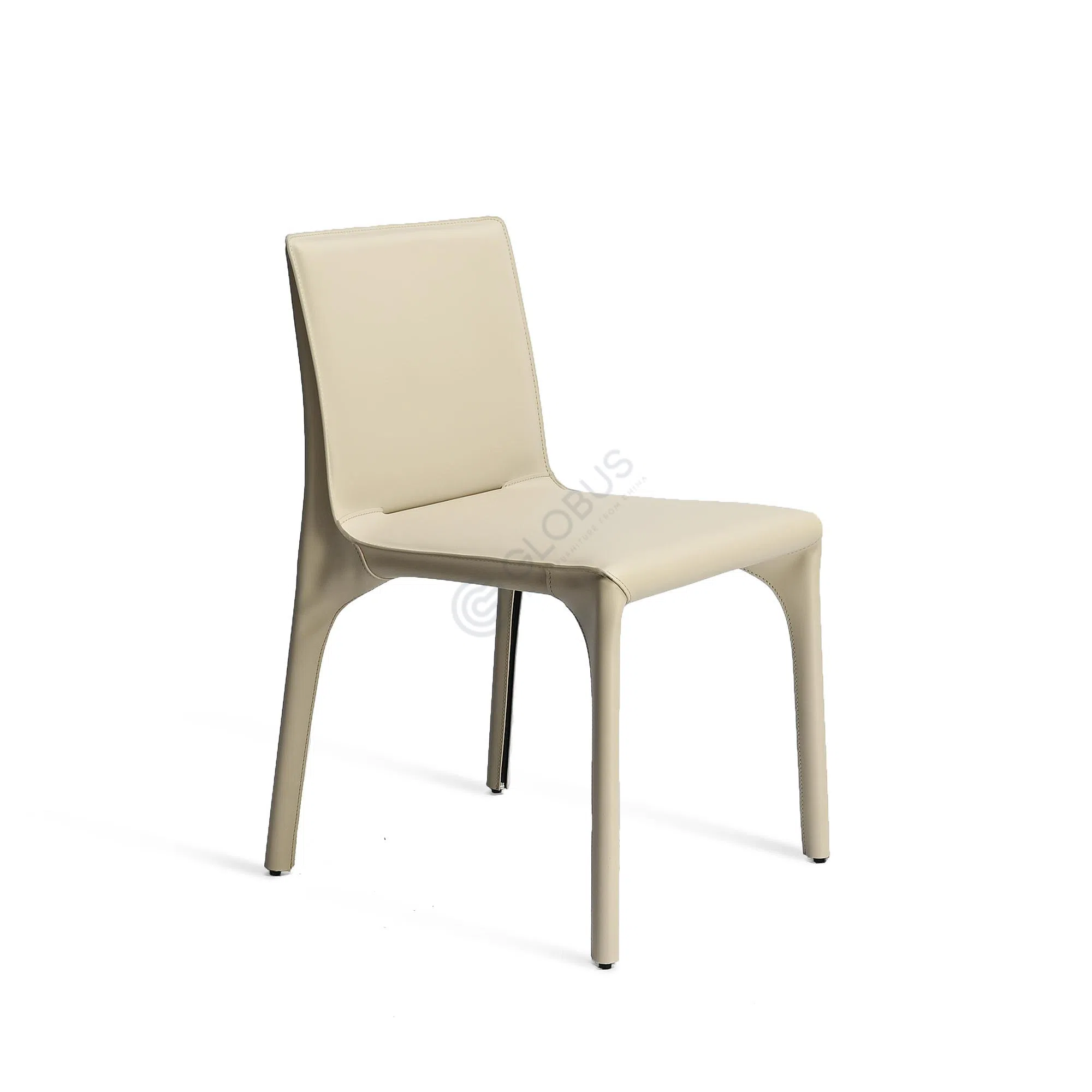 Обивка из шорно-седельной кожи обволакивает сиденье и спинку, даря приятное ощущение мягкости и благородства. Этот материал отличается исключительной долговечностью и со временем лишь приобретает более глубокую, уникальную патину, подчеркивая свой премиальный статус. Основание стула, выполненное из прочной нержавеющей стали, обеспечивает превосходную устойчивость, а его сияющая поверхность добавляет современный штрих, создавая гармоничный контраст с теплой текстурой кожи.