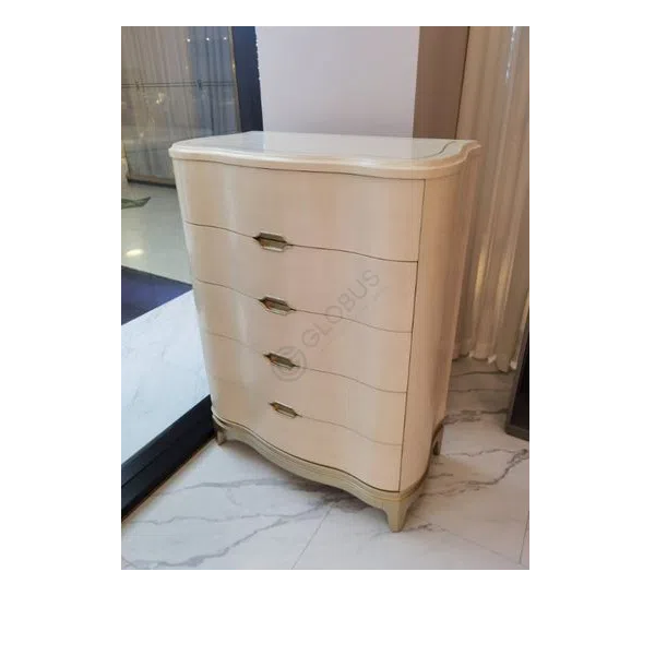 Элегантное кресло выполнено в стиле неоклассика и гармонично сочетает мягкость текстиля с благородством натурального дерева. Сдержанная светлая обивка придаёт интерьеру лёгкость, а тщательно проработанная резьба по дереву добавляет изысканные акценты.