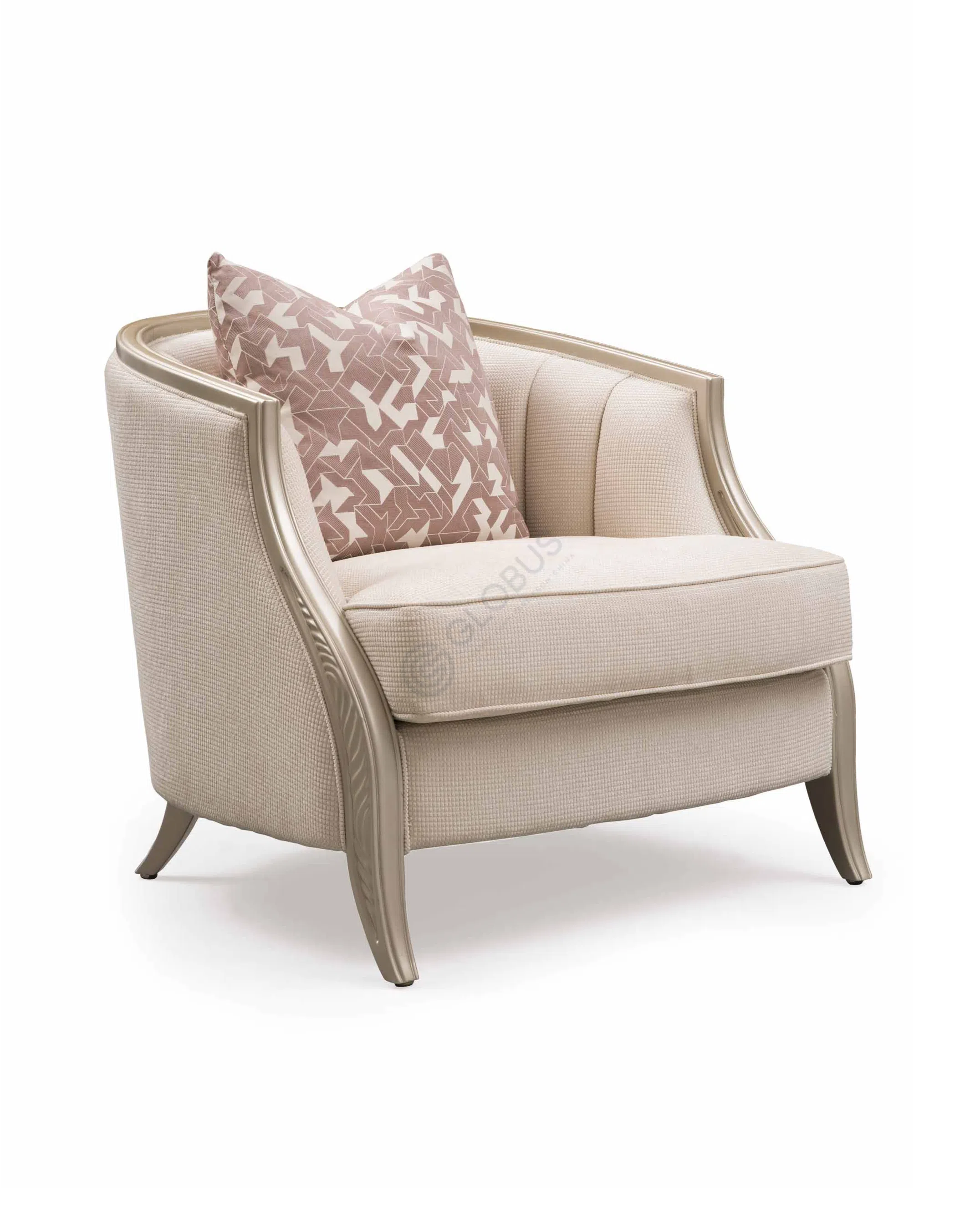 Каркас выполнен из натурального дерева с декоративными элементами, подчёркивающими статус мебели. Высокая спинка и продуманная эргономика обеспечивают удобство в повседневном использовании.