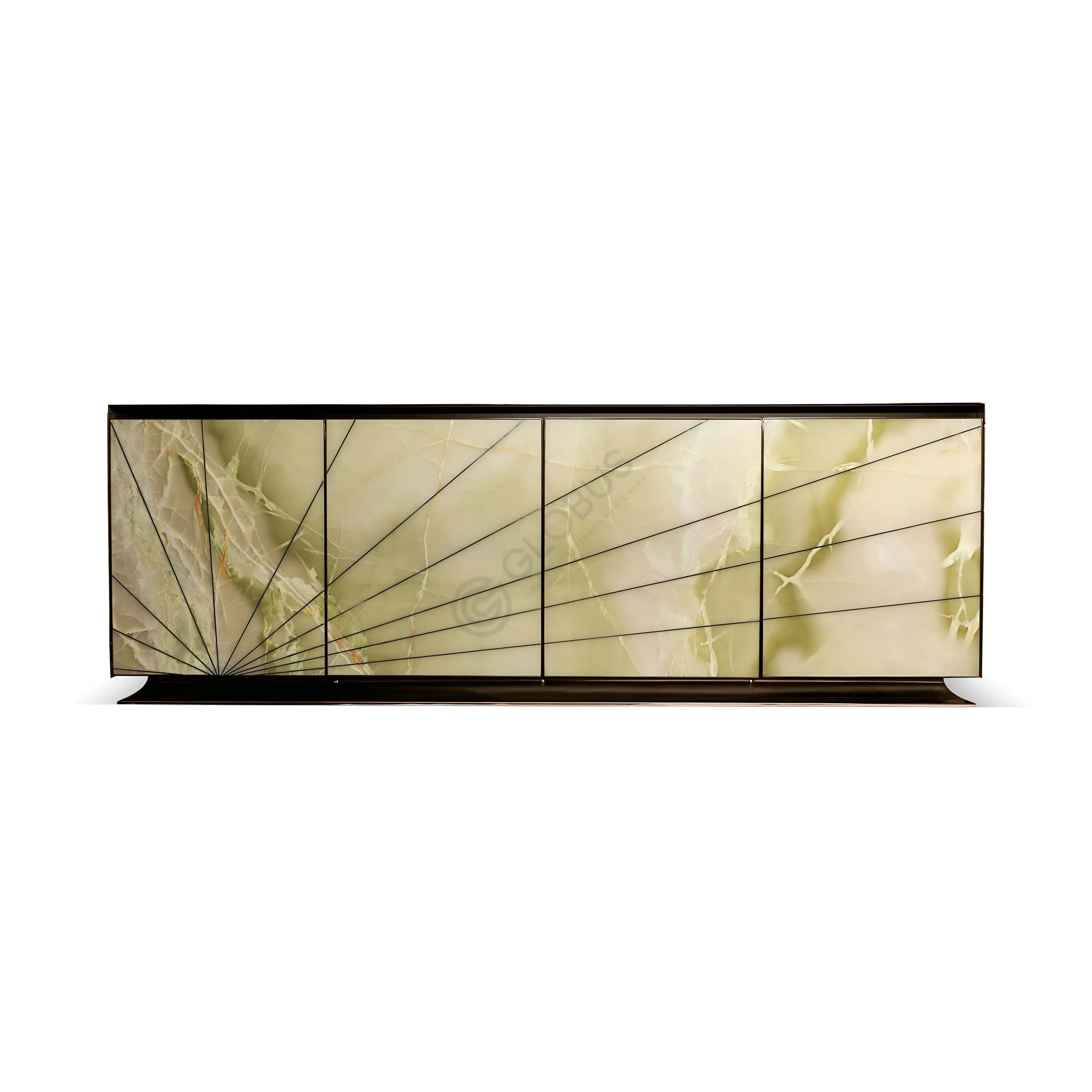 Эта консоль является изысканным воплощением современного дизайна, где природная красота агата встречается с искусством металлообработки. Ее облик мгновенно притягивает взгляд, создавая фокусную точку в любом пространстве.