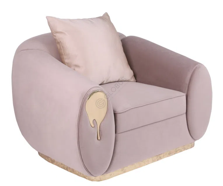 Модель легко сочетается с мрамором, темным деревом и приглушенной палитрой текстиля, собирая зону гостиной в цельную и изысканную композицию.