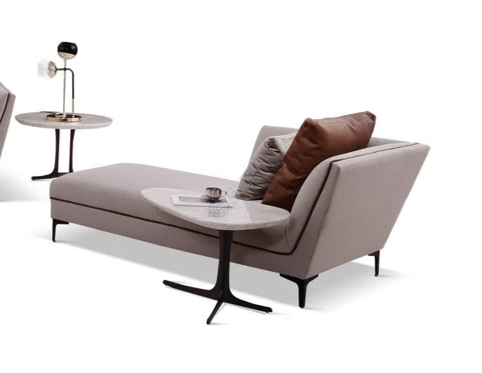 Основание конструкции выполнено из сочетания натурального дерева и прочной фанеры, обеспечивая надежность и долговечность. Утонченные металлические опоры придают изделию легкость и завершенный вид, подчеркивая его современный характер. Обивка из премиального текстиля приятна на ощупь и устойчива к повседневному использованию, сохраняя свой привлекательный вид на долгие годы.