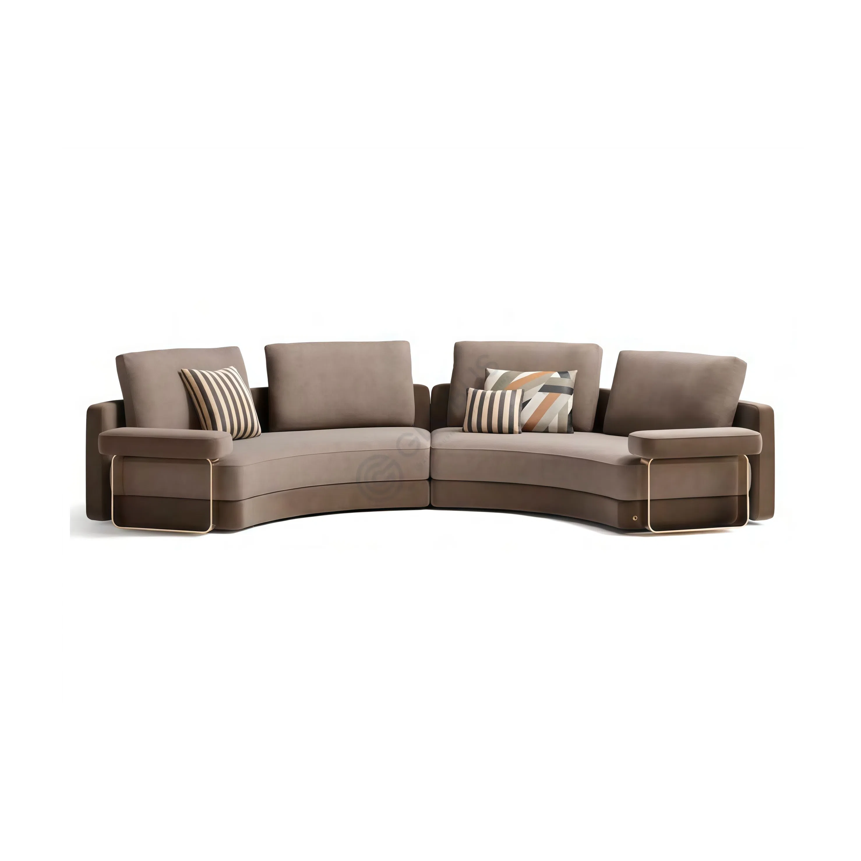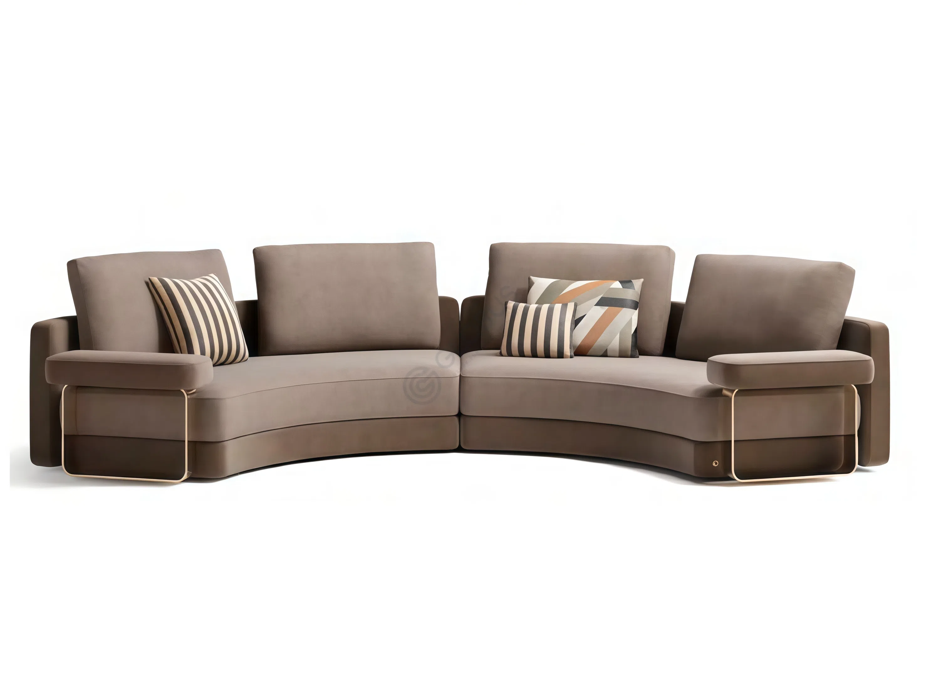 Основой его выразительного дизайна является плавность форм. Искусно изогнутые подлокотники из полированной нержавеющей стали с благородным золотистым блеском служат эффектным акцентом, подчеркивая элегантный силуэт. Устойчивое круглое основание из металла обеспечивает функциональность вращения, добавляя динамики в статичный образ. Внутренний каркас из натурального дерева гарантирует долговечность и прочность конструкции.