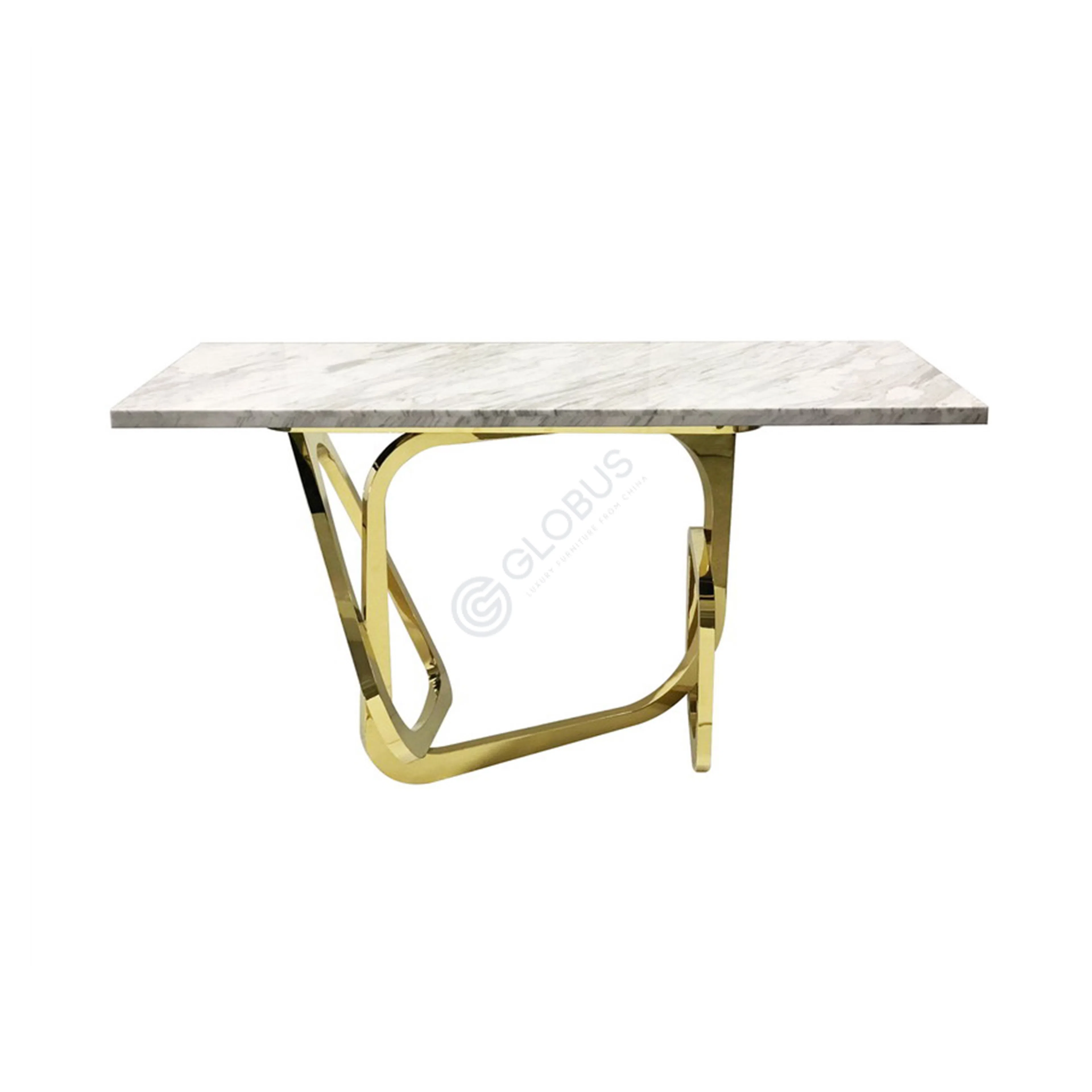 Скульптурное основание, искусно выполненное из нержавеющей стали, придает столу уникальный и динамичный вид. Переплетающиеся линии металлической базы демонстрируют геометрическую точность и утонченность, характерные для золотой эры дизайна.