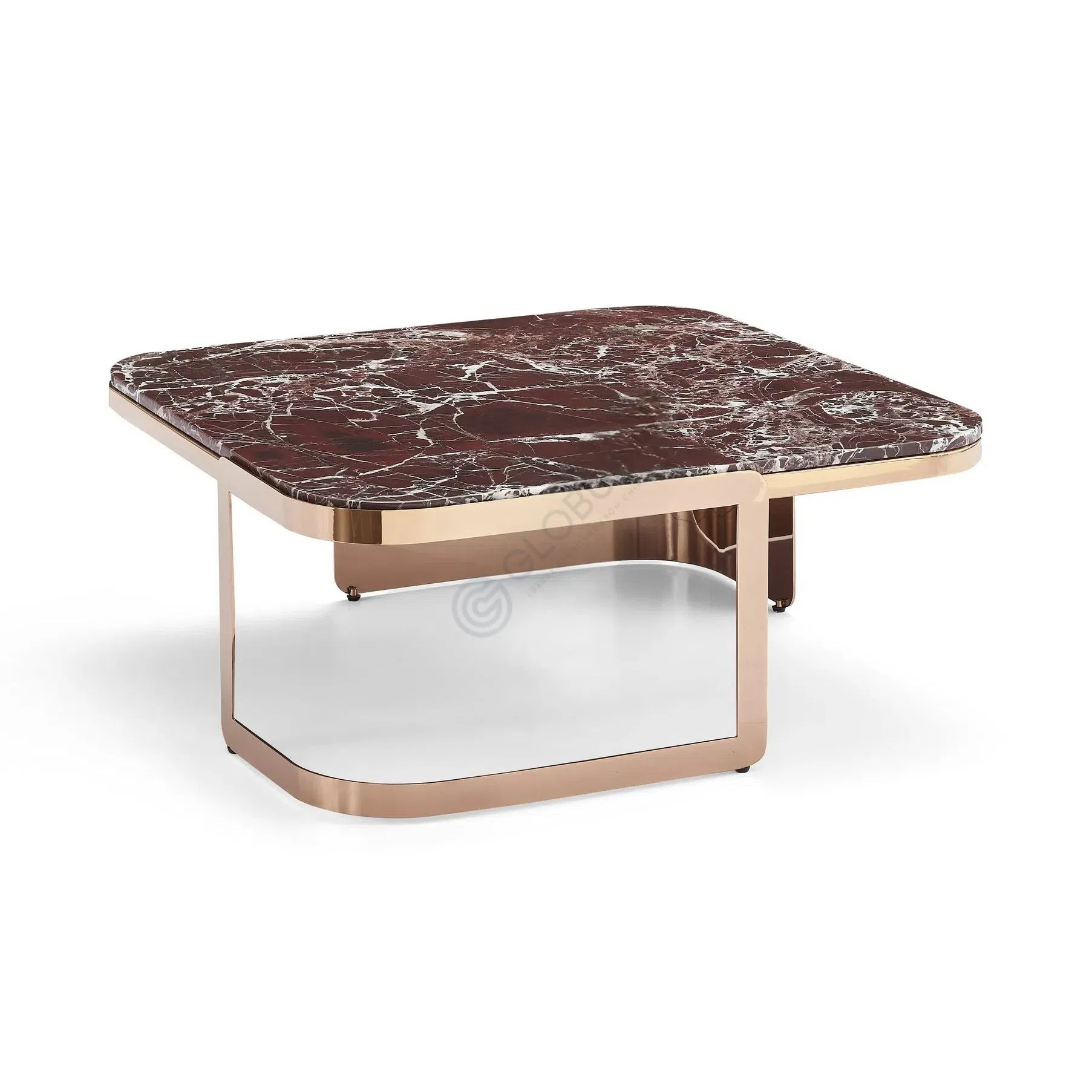Основание изделия выполнено из полированной нержавеющей стали, изогнутые линии которой придают конструкции легкость и воздушность. Скрытые элементы из натурального дерева обеспечивают прочность и долговечность каркаса, создавая надежную основу.