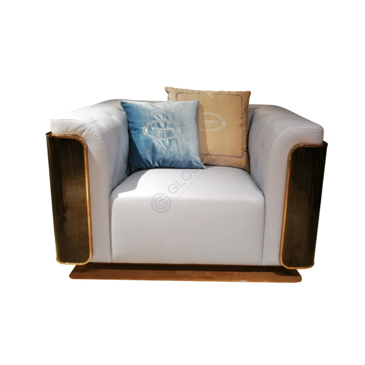 Завершающим штрихом служат изящные наконечники из полированной латуни на передних ножках. Этот металлический акцент придает предмету мебели особый шарм, подчеркивая его премиальный статус и внимание к деталям. Такой стул становится не просто функциональным элементом, но и выразительным акцентом в дизайне интерьера.