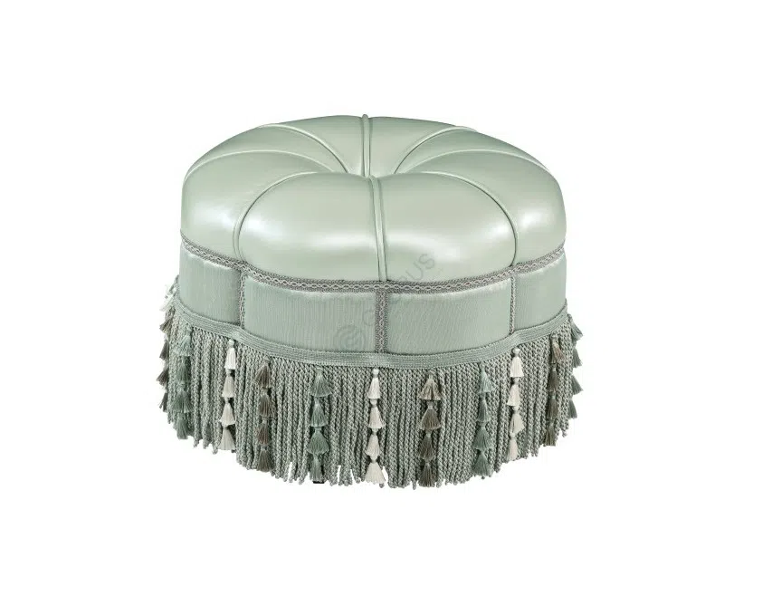 Обивка выполнена из высококачественного текстиля нежного мятного оттенка. Мягкая поверхность спинки дополнена изящной каретной стяжкой, формирующей объемные ромбы и пуговицы, что придает изделию дополнительную элегантность. Сиденье также покрыто благородной тканью с тонким узором.