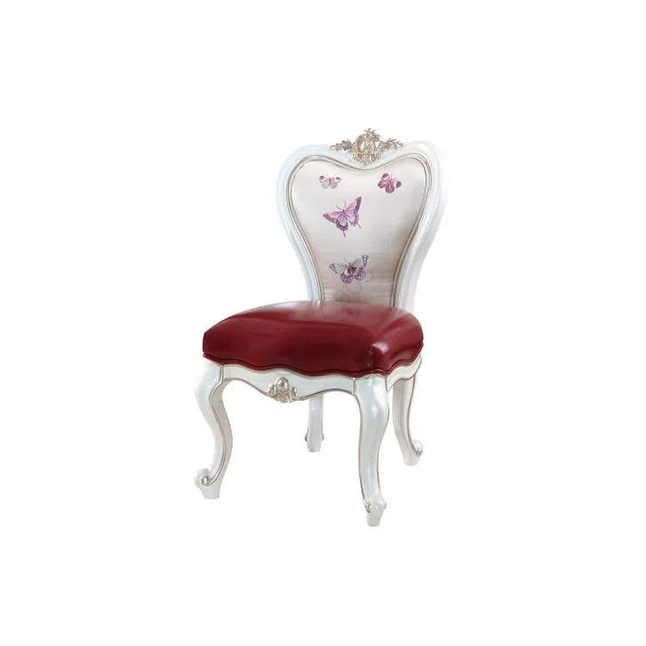 Сиденье обито премиальной экокожей на микрофибре глубокого бордового цвета, обеспечивая не только привлекательный вид, но и приятные тактильные ощущения в использовании. Спинка оформлена нежным текстилем, украшенным живописным рисунком, который придает предмету мебели особый шарм и индивидуальность.