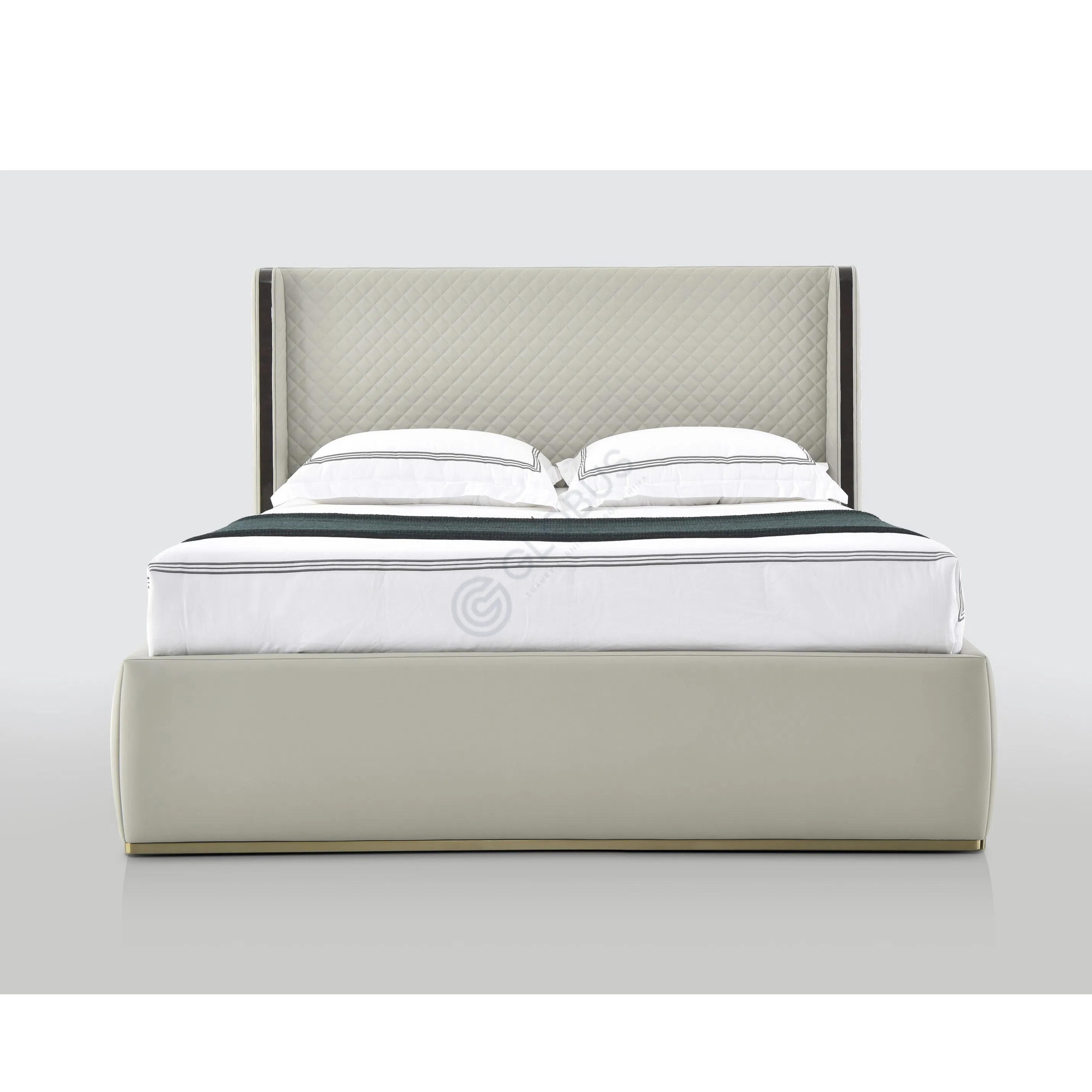 Обивка, выполненная из высококачественной экокожи на микрофибре, пленяет нежной текстурой и приятными тактильными свойствами. Внешняя часть спинки и боковин оформлена изысканной ромбовидной стежкой, которая придает креслу особый шарм, перекликаясь с классическими мотивами в современной интерпретации. Контрастные вставки из темной экокожи по периметру подлокотников подчеркивают изящные изгибы, добавляя выразительности силуэту.