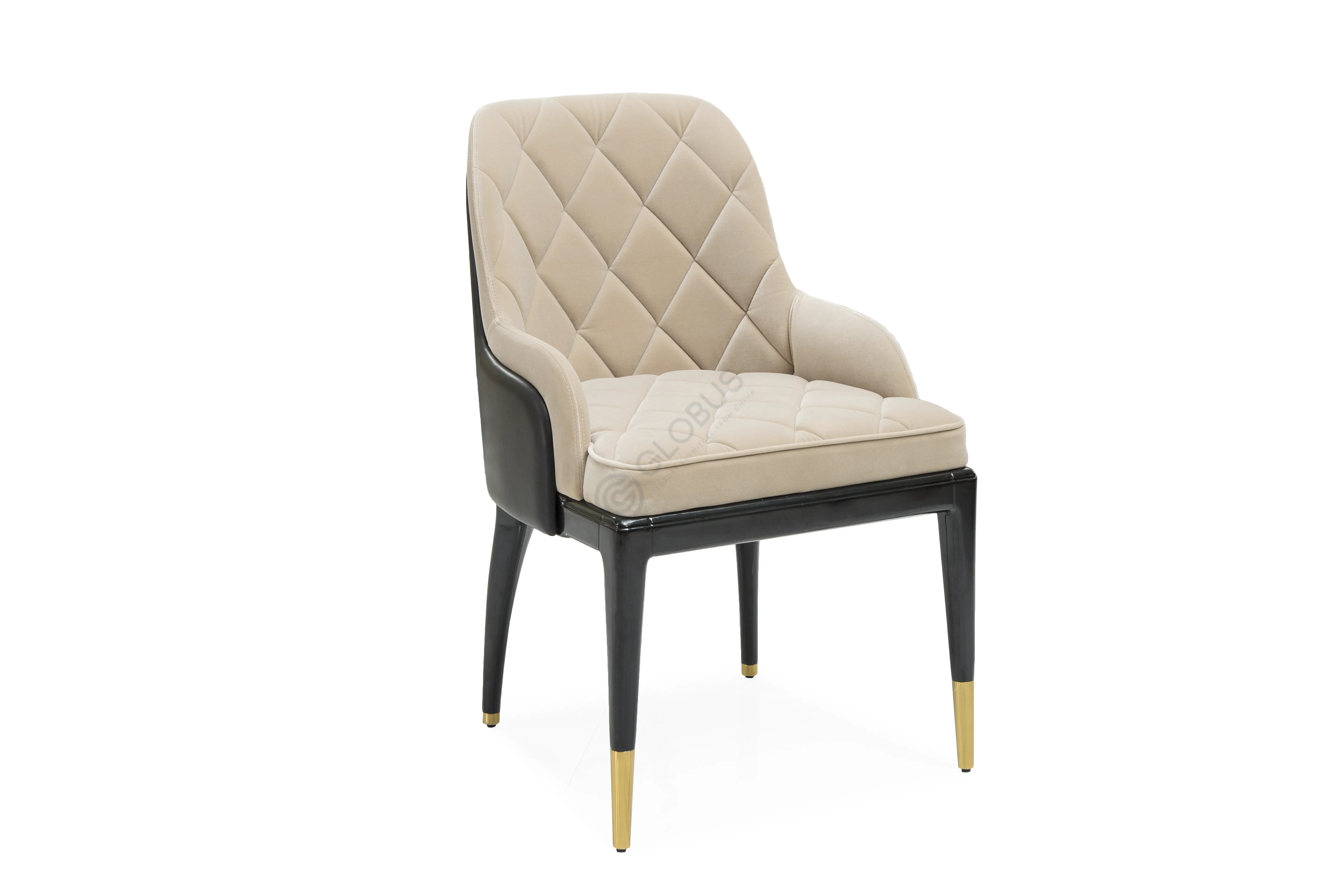 Благородный рельеф стежки в ар-деко стиле гармонирует с плавными линиями сиденья и спинки. Черная лакированная ножка с металлическими деталями выглядит строго и современно, делая модель универсальной для кухни или столовой в духе современной роскоши.