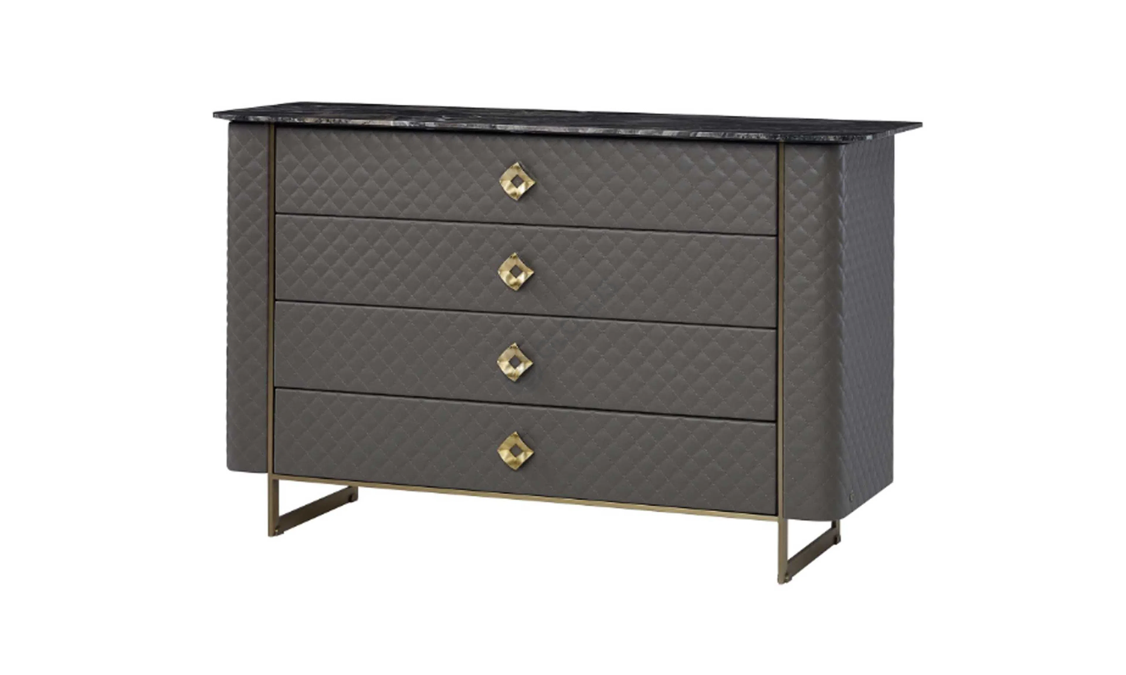 При создании этого элемента обстановки использовались материалы премиального качества. Каркас изделия выполнен из натурального дерева, фанеры и шпона, обеспечивая ему прочность и долговечность. Верхняя поверхность может быть изготовлена из натурального мрамора, придающего особый шарм, или из натурального дерева, подчеркивая теплоту материала. Боковые части и фасад выдвижного ящика элегантно отделаны экокожей на микрофибровой основе, которая отличается приятной фактурой и украшена изысканной ромбовидной стежкой.