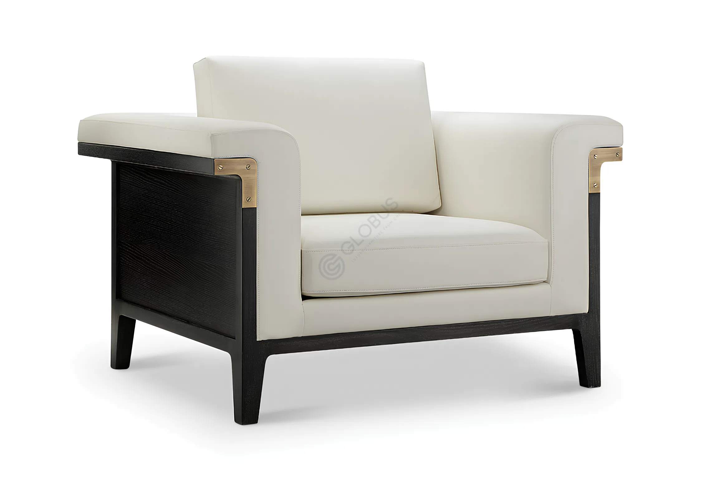 Компактная форма органично встаёт в гостиную, спальню или прихожую. Низкие подлокотники-валики обеспечивают удобную посадку, на них можно опереться или разместить мелочи. Устойчивая деревянная конструкция и износостойкая обивка легко выдерживают повседневное использование, медь добавляет благородный акцент и повышает долговечность узлов.