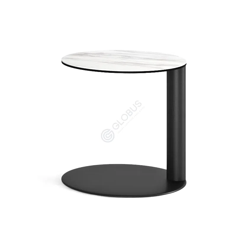 Конструкция предмета мебели отличается минималистичностью и функциональностью. Округлая форма столешницы и устойчивое основание формируют цельный и завершенный силуэт. Геометрическая простота форм делает этот столик универсальным дополнением к разнообразным интерьерным решениям.
