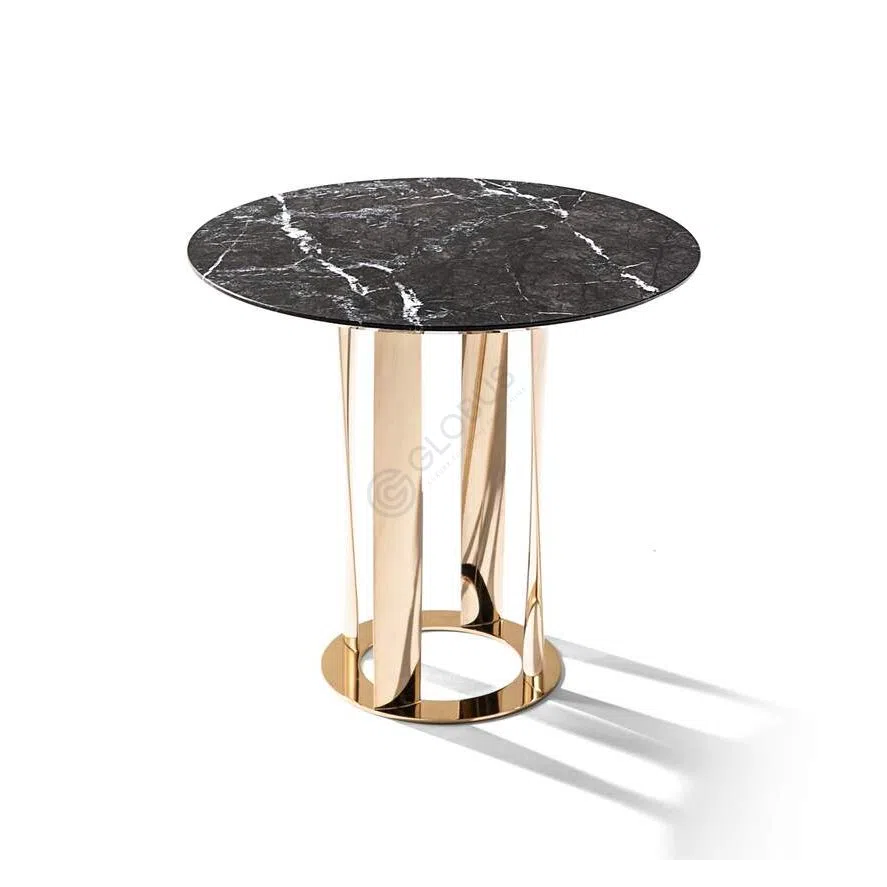Гармоничное сочетание богатой текстуры поверхности и сияющего металлического основания формирует завершенный образ. Стол предназначен для тех, кто ценит безупречное качество, инновационный подход к форме и способность мебели преображать повседневные моменты в незабываемые события.