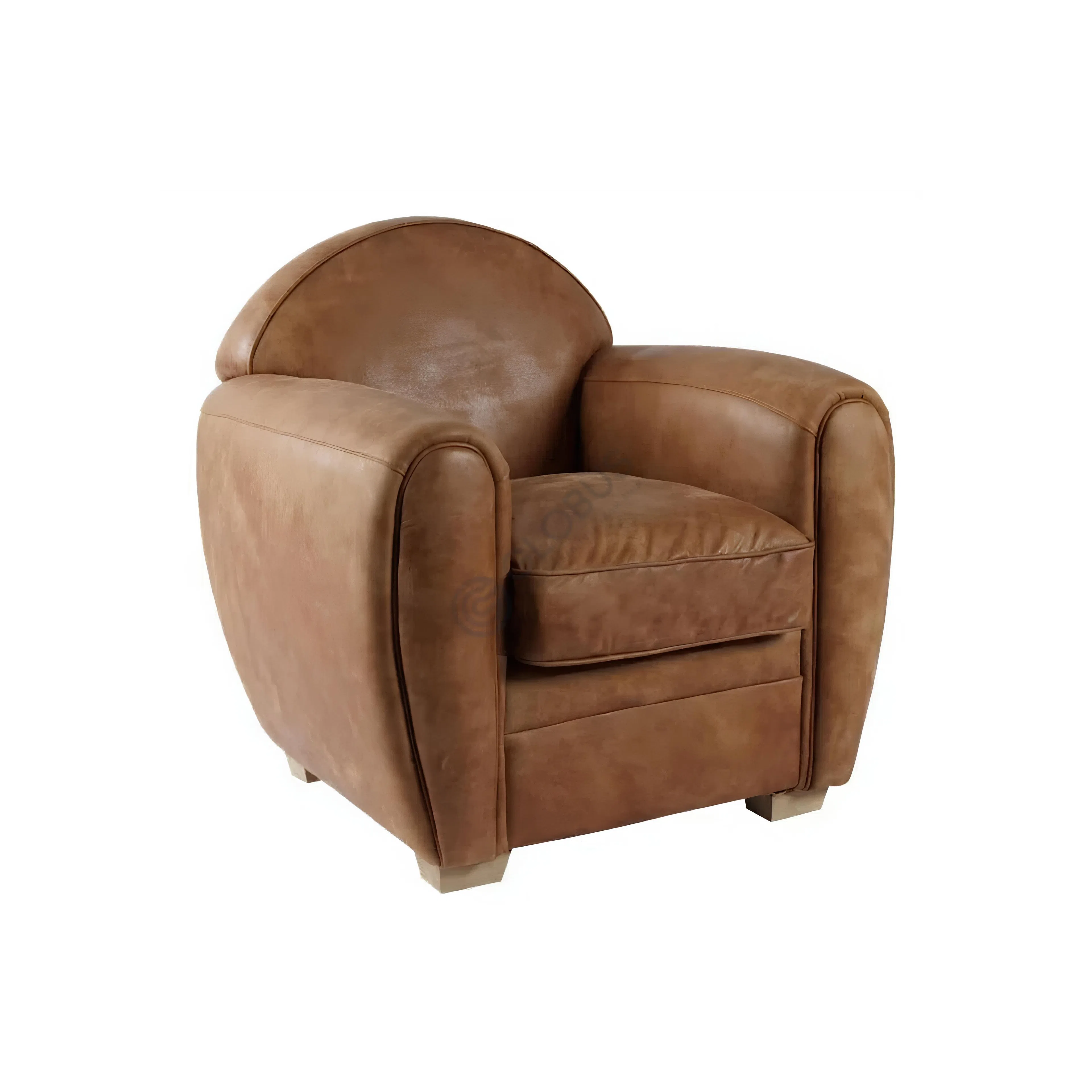 Диван выполнен из натуральной кожи приятного глубокого оттенка, который естественно подчеркивает строгую элегантность стиля лофт. Мягкие подушки обеспечивают особенно высокий комфорт, а округлые линии спинки и подлокотников создают гармоничный силуэт, акцентируя изысканность гостиной.