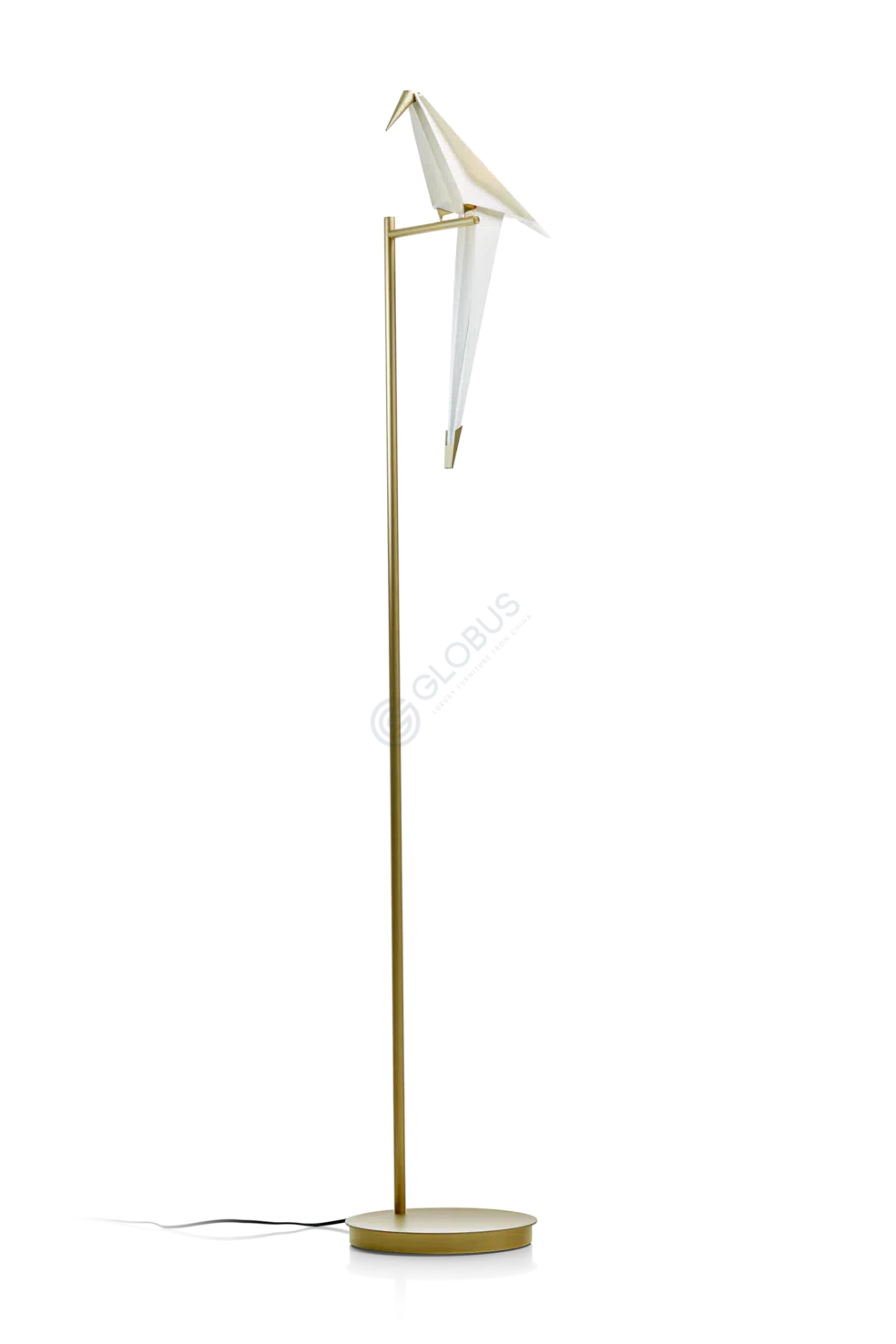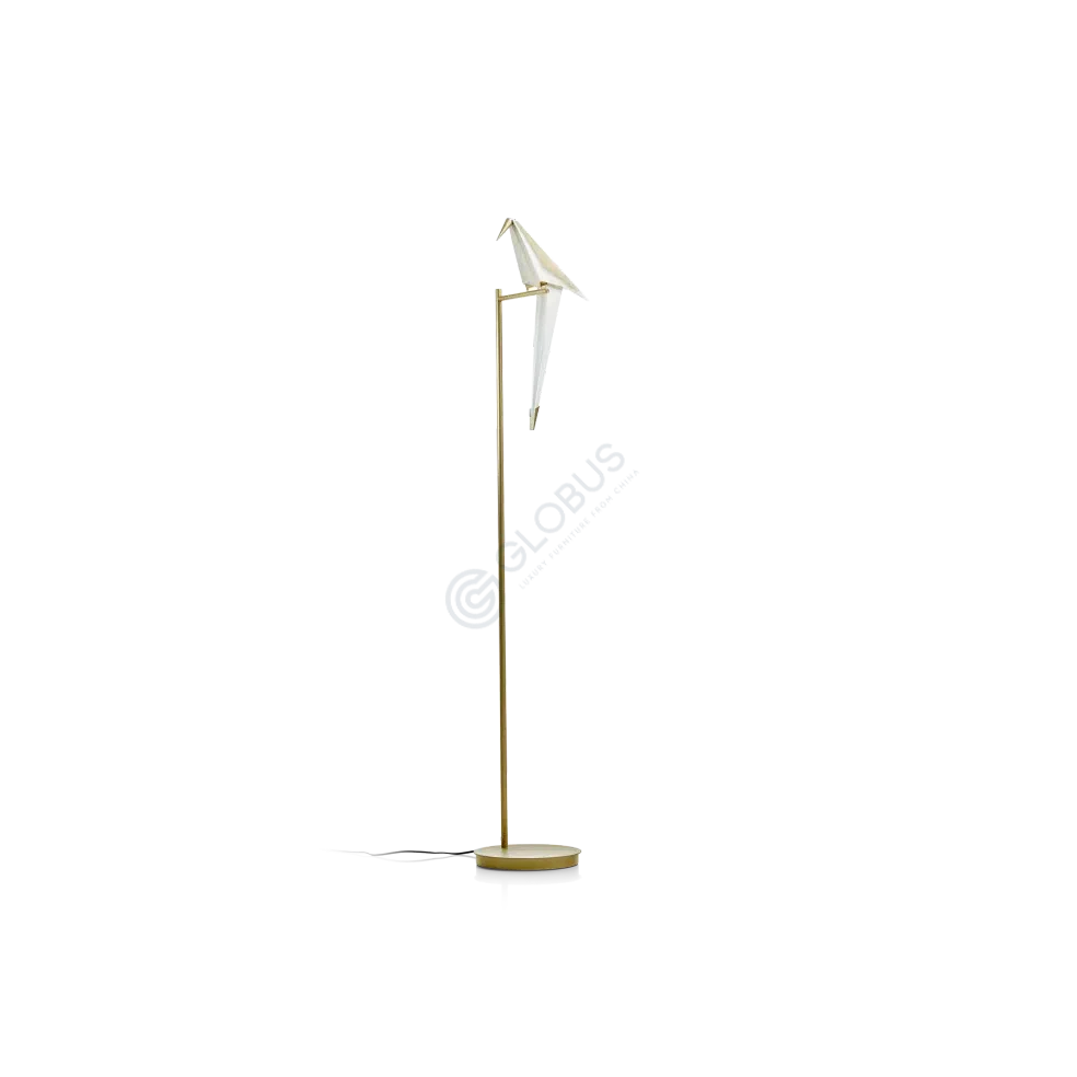 Изящная конструкция выполнена из сочетания благородной латуни и прочного железа, обеспечивающих устойчивость и долговечность. Пластиковый плафон, имитирующий сложенную бумагу, дарит мягкое свечение, создавая уютную атмосферу. Золотистые акценты добавляют изделию утонченности.