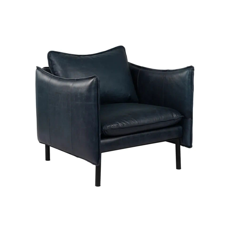 Диван сдержанной формы воплощает эстетику современного лофта, сочетая благородную кожу глубокого черного оттенка и лаконичную железную раму. Объемные мягкие подушки обеспечивают комфорт, а строгие линии конструкции подчеркивают актуальный дизайнерский образ.