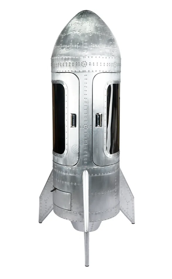 Этот винный шкаф представляет собой исключительное сочетание индустриальной эстетики и продуманной функциональности. Его корпус, выполненный из прочного алюминия, впечатляет своей характерной поверхностью с видимыми заклепками, отсылая к брутальному стилю лофт. Массивные деревянные ручки подчеркивают надежность и добавляют теплоту к металлической фактуре, а выразительные формы приковывают взгляд, делая его центральным элементом интерьера.