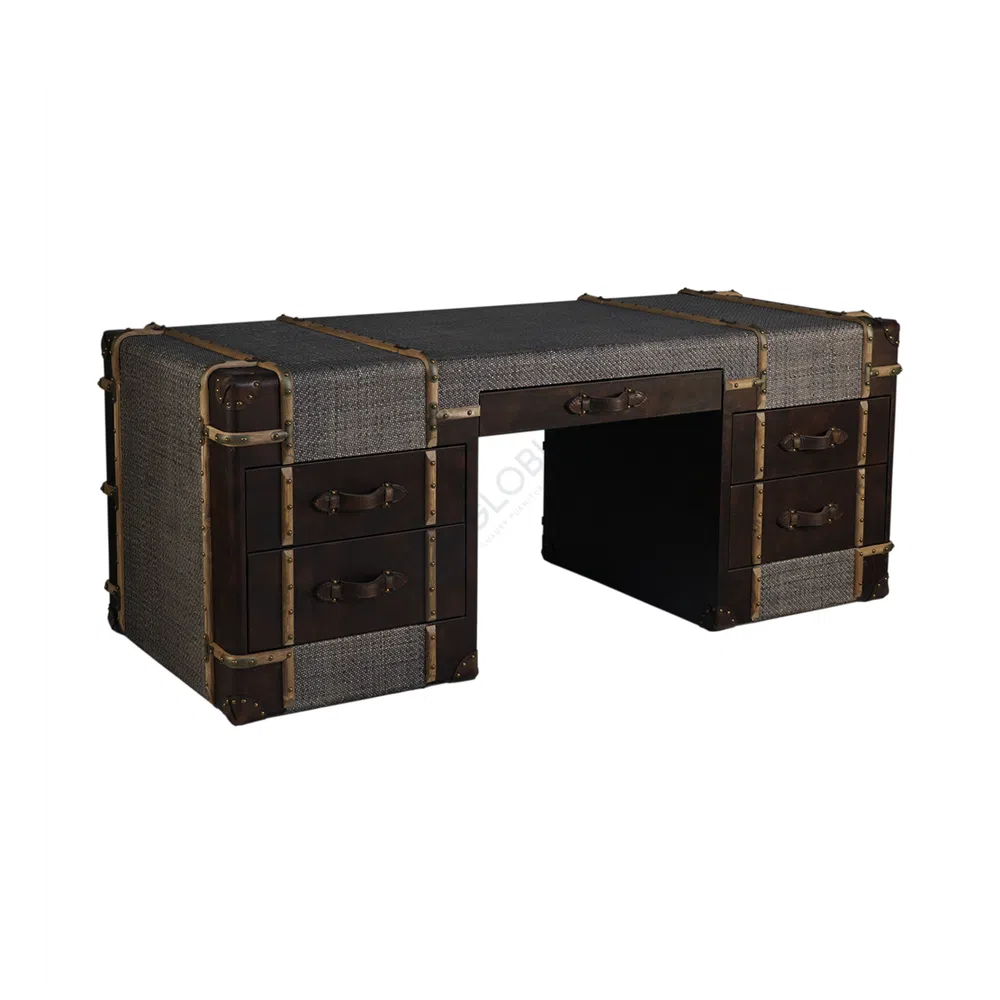Эта консоль воплощает собой идею изысканного путешествия, где каждая деталь рассказывает свою историю. Ее уникальный силуэт, напоминающий старинный дорожный сундук, привносит в пространство гостиной неповторимый характер, идеально соответствующий брутальной элегантности стиля лофт.