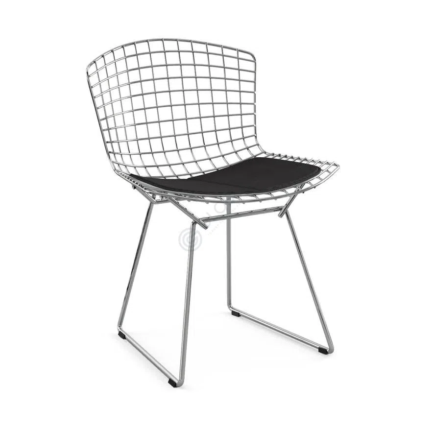 Мягкая подушка из искусственной кожи черного цвета деликатно контрастирует с хромированным или окрашенным металлом каркаса, обеспечивая комфорт сидения. Этот материал практичен в уходе и долговечен, что особенно важно для мебели, используемой в зонах приема пищи.