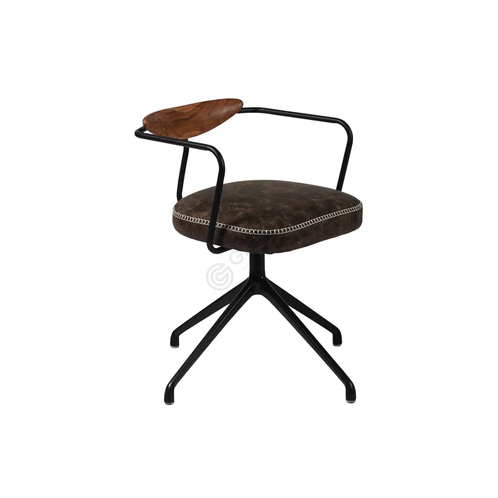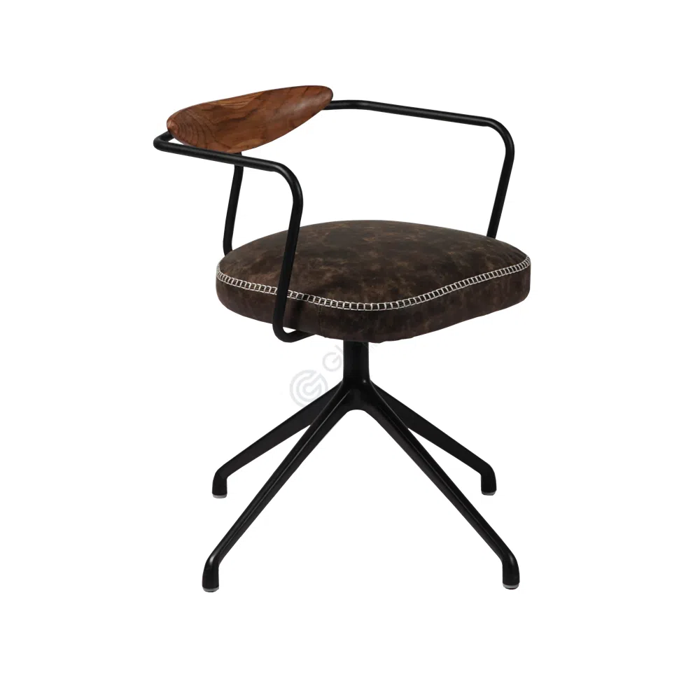 Основа удобства — это мягкое сиденье, обитое высококачественной кожей с декоративной строчкой, которая подчеркивает его изгибы и придает ему особый характер. Изящная спинка, выполненная из натурального дерева, обеспечивает надежную опору и добавляет теплоты в общий вид. Скрытый слой фанеры внутри конструкции сиденья гарантирует долговечность и сохранение первоначальной формы.